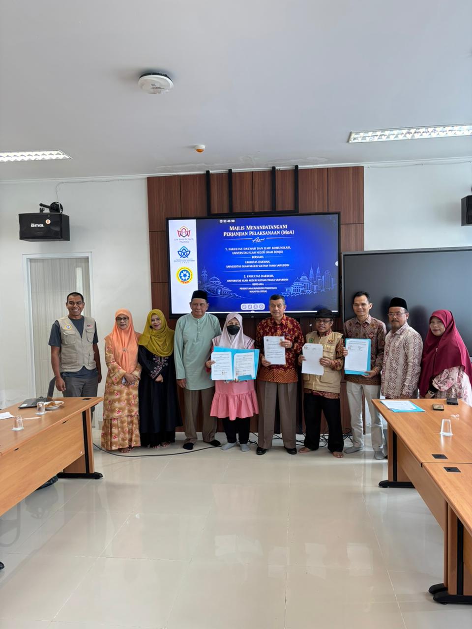 Penandatanganan MoA tersebut dilaksanakan pada Sabtu, 14 Februari 2025, bertempat di Gedung FDIK UIN IB Padang. Adapun pihak-pihak yang terlibat dalam penandatanganan adalah Dekan FDIK UIN IB Padang, Dr. Murisal, S.Ag., M.Pd., Presiden PEKA Malaysia, Dr. Datin Siti Taniza Toha, serta Dekan FD UIN STS Jambi, Prof. Dr. H. Ahmad Syukri, S.S., M.Ag.